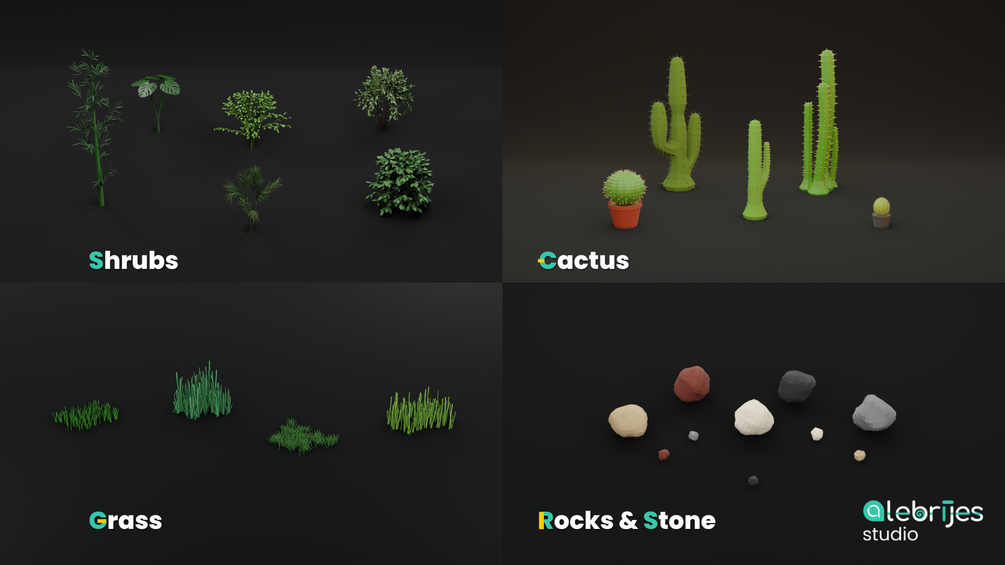 This 3D package is ideal for game developers, environment designers and 3D artists looking for a complete solution to build natural landscapes with an optimized polygonal style.